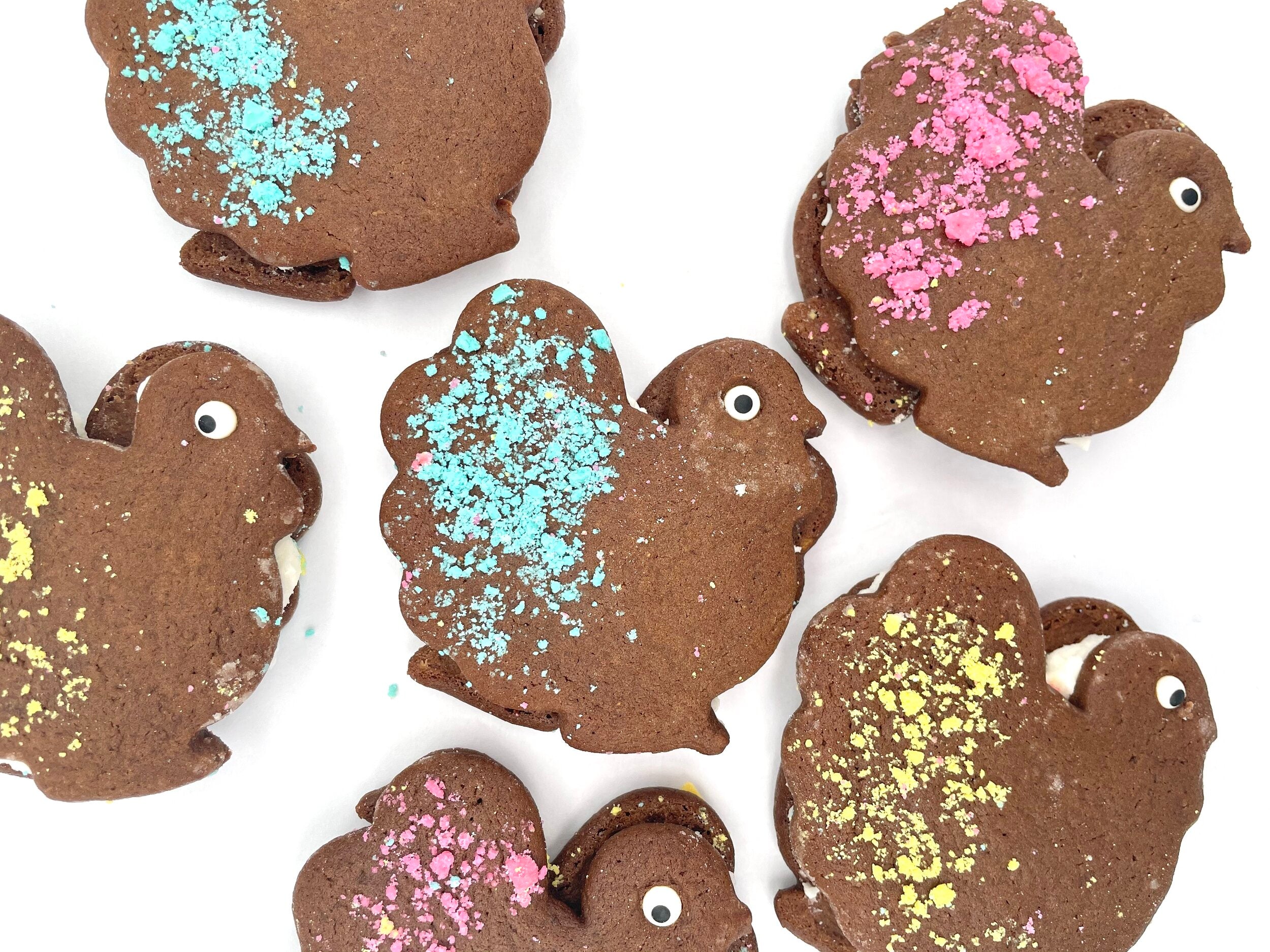 Each cookie sandwich measures 3" H x 2.75" W. Packaged individually in compostable PLA bag.