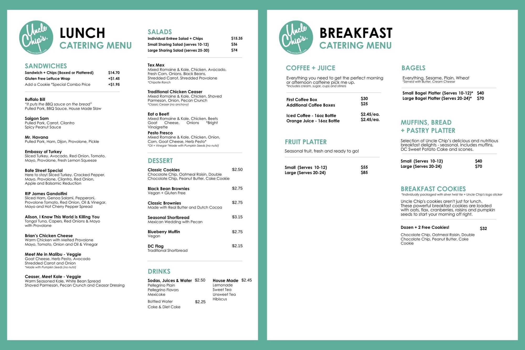 If you want to see our Breakfast or Lunch Catering Menu, be sure to scroll all the way down on the Chow Now App until you see the sections that say: